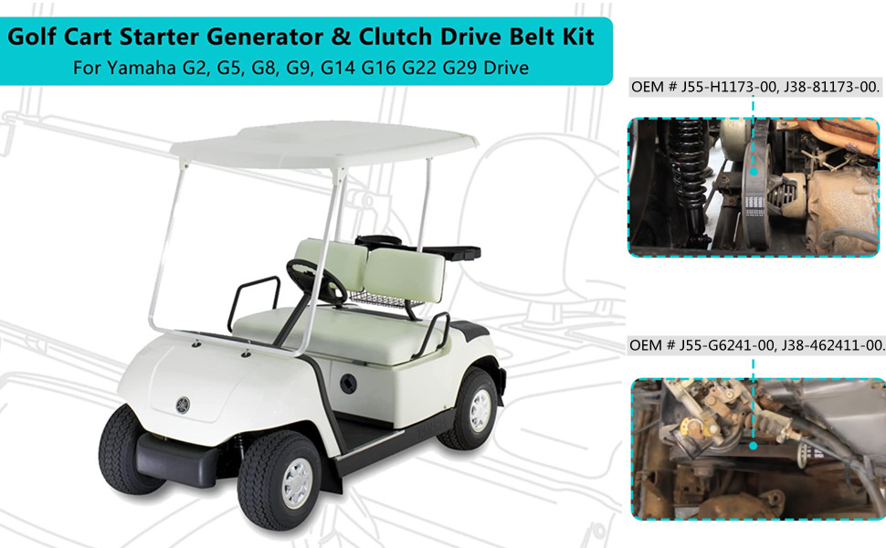 Amazon Com 10l0l Golf Cart Starter Generator Clutch Drive Belt Kit For Yamaha G2 G5 G8 G9 G14 G16 G22 G29 Drive Gas 4 Cycle Models Replace Oem J55 G6241 00 J55 H1173 00 Sports